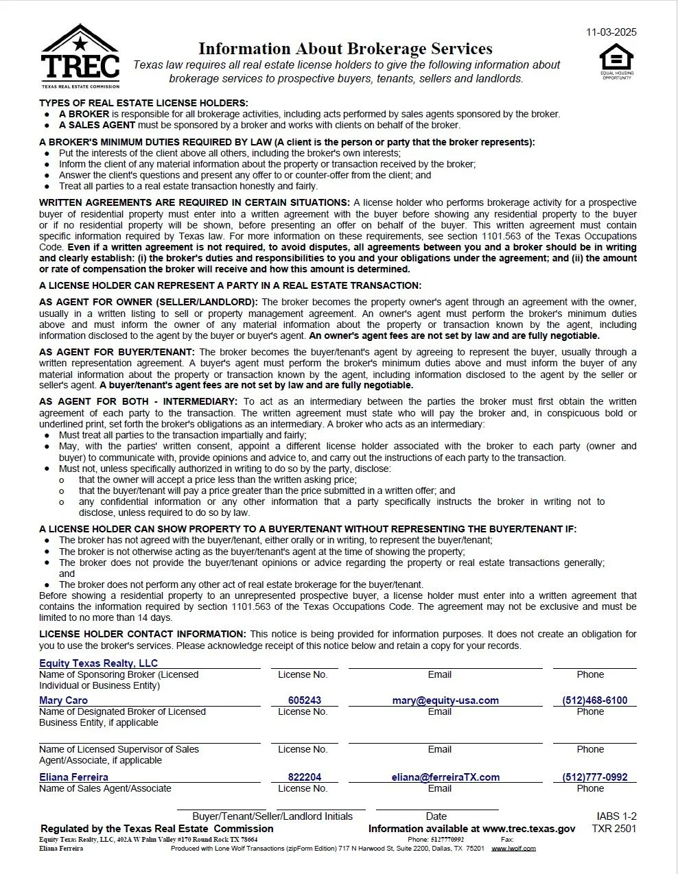 TREC Information About Brokerage Services